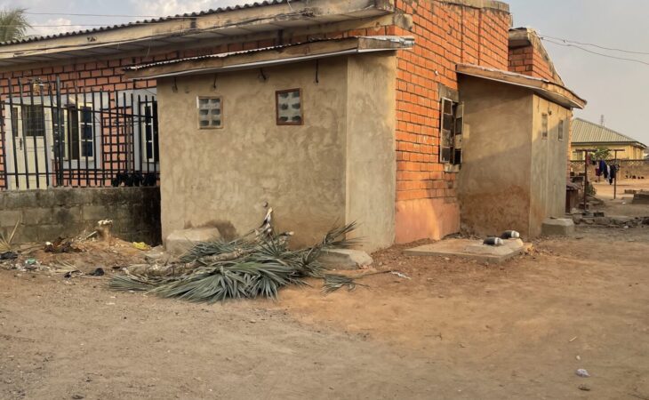 it’s a red brick building located at a very prominent area pw primary school it’s got 2 parking sport and a back yard with a mini store a very cool calm situated areas for lively hood and recreational businesses.
