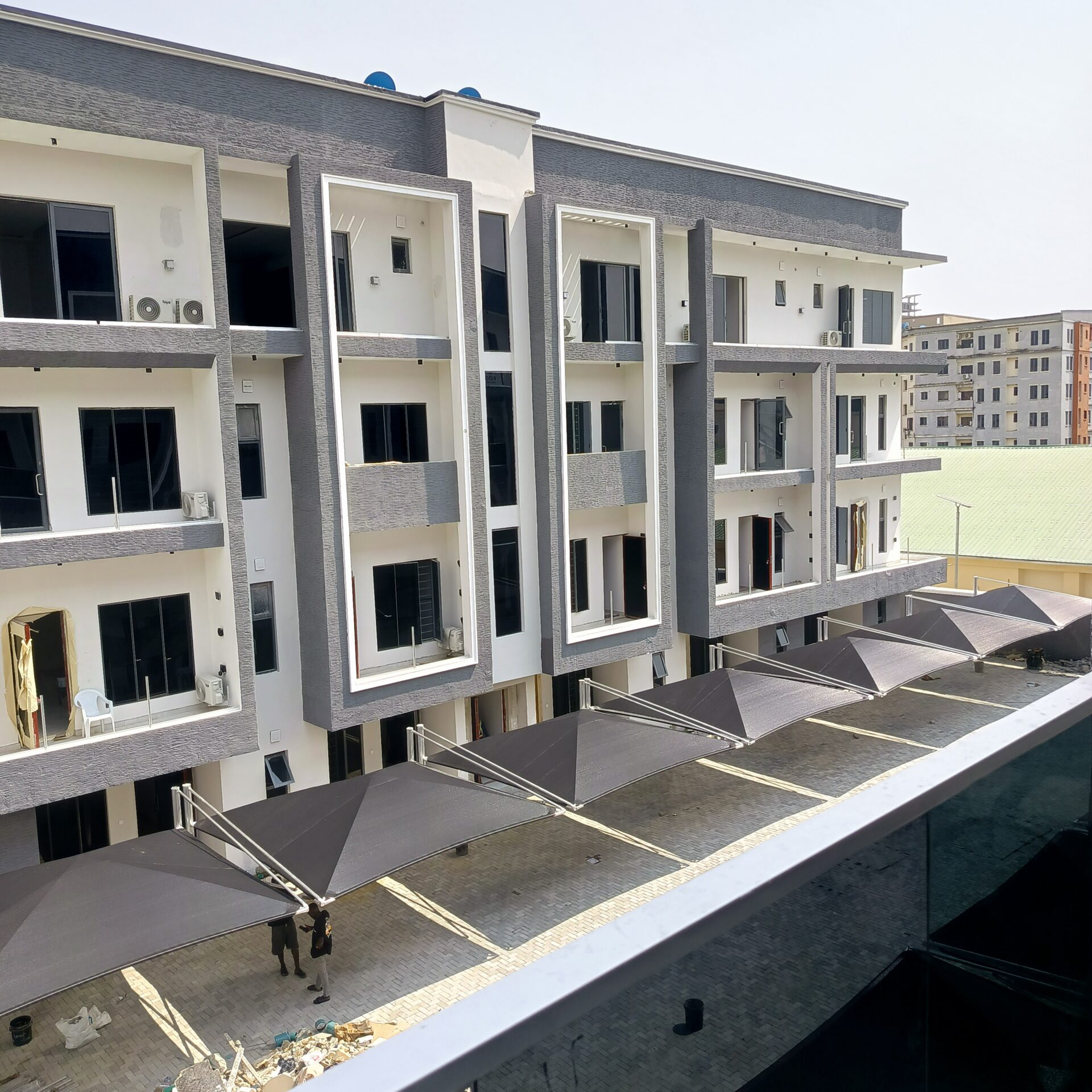 A classic and luxuriously in style newly built spacious 4bedroom terrace having ground floor and 2 floors with fitted kitchen having AC’s in all rooms with spacious balcony with bq, swimming pool, car port, paved inside out with security personnel. It’s available for sale and also for yearly lease